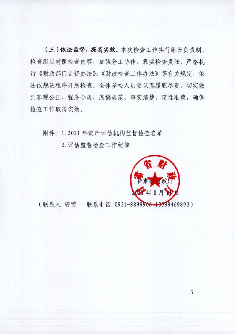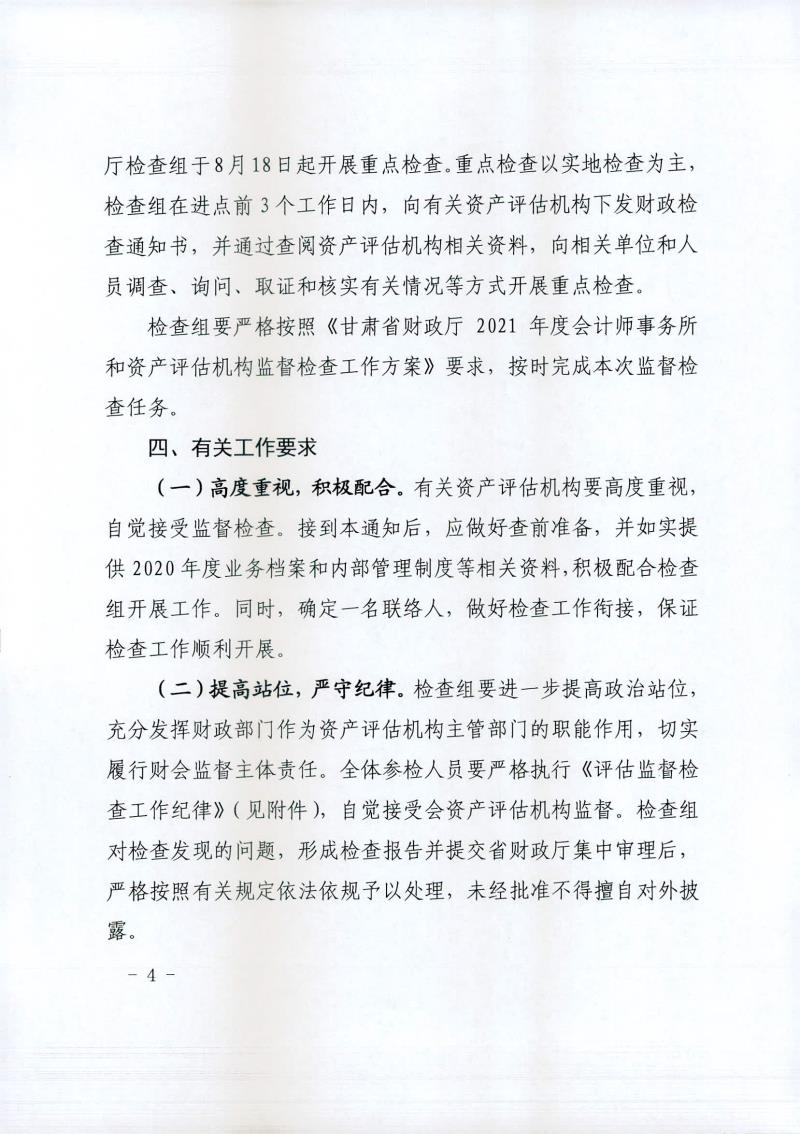 甘肃省财政厅关于开展2021年度资产评估机构监督检查工作的通知